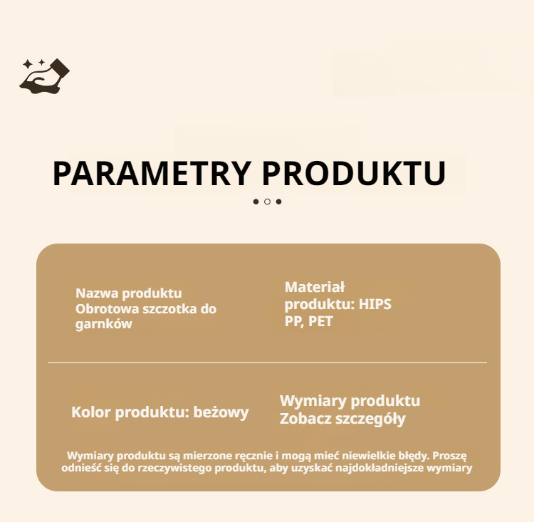● Miękka szczotka do mycia naczyń skutecznie usuwa zabrudzenia, nie rysując delikatnych powierzchni naczyń i garnków. ● Ergonomiczny uchwyt zapewnia wygodę podczas codziennego użytkowania, minimalizując zmęczenie dłoni nawet przy dłuższym myciu. ● Łatwa do czyszczenia i szybkoschnąca konstrukcja zapobiega rozwojowi bakterii, gwarantując higienę w Twojej kuchni. ● Idealna do mycia szkła, porcelany i powłok nieprzywierających — dba o jakość i trwałość Twoich naczyń. ● Wytrzymałe włosie zapewnia długotrwałe użytkowanie, a kompaktowy rozmiar pozwala na wygodne przechowywanie.
