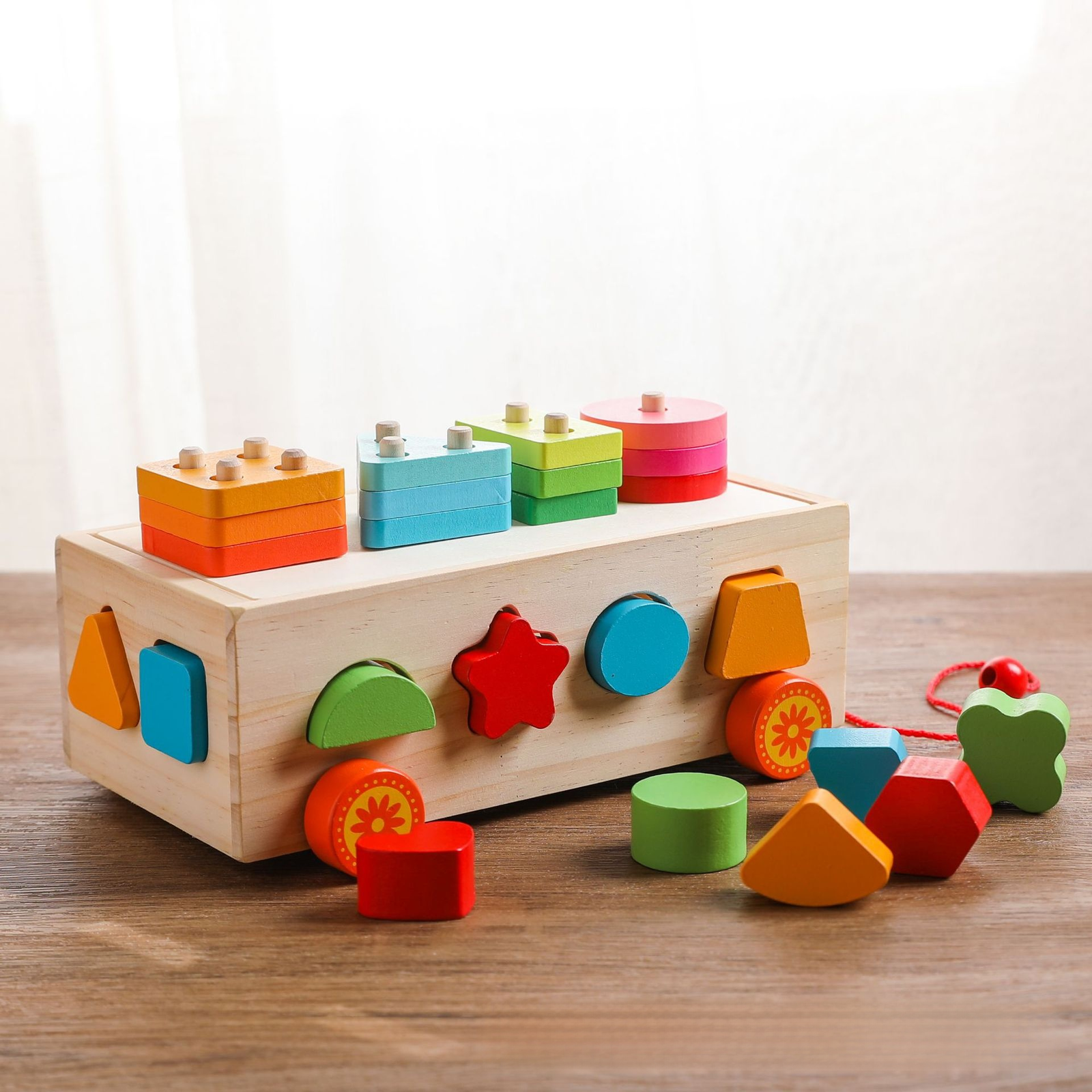 Edukacyjna zabawka dla niemowląt – drewniana układanka kolorów i kształtów